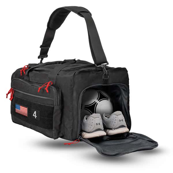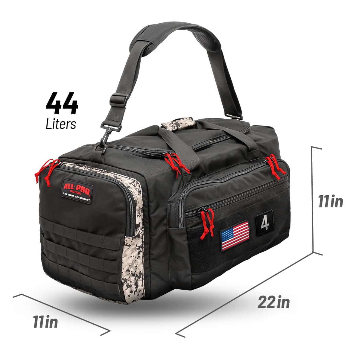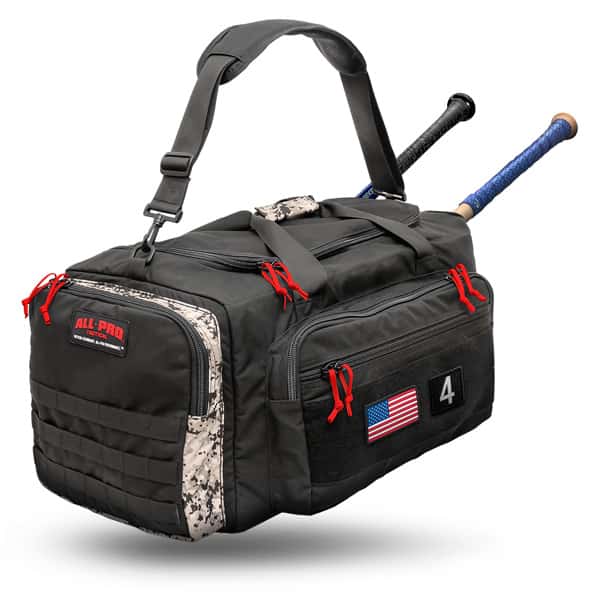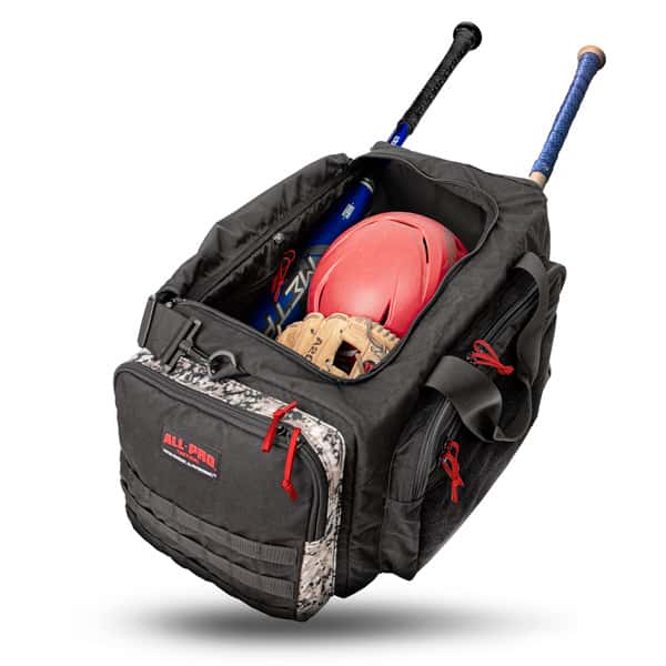 Any Ball, Any Bat, Any Stick, Any Sport. Backed by a lifetime guarantee by All-Pro Tactical. • Pack cloth lined end pocket with mesh vented door perfectly sized to carry balls, cleats and uniforms. • Two reinforced side panel openings for easy slide-in-slide-out storage of any bat or stick. • Heavy duty plastic molded zippers eliminate corrosion and sticking. • Full-length lined internal side pocket provides protection for glasses, phones and valuables. • Full zip main cargo compartment opens wide for easy access. • Top-zip extra large outer side pocket for storing additional necessities. • Full zip end pocket for for additional storage. • Built with abrasion resistant ballistic nylon for maximum durability. • Reinforced handle straps with padded handle for easy hoisting and carrying. • Super-padded shoulder strap with spacer mesh for airflow. • American Flag included. Size (L x W x H): 11″ x 22″ x 11″ Volume (liters): 44L