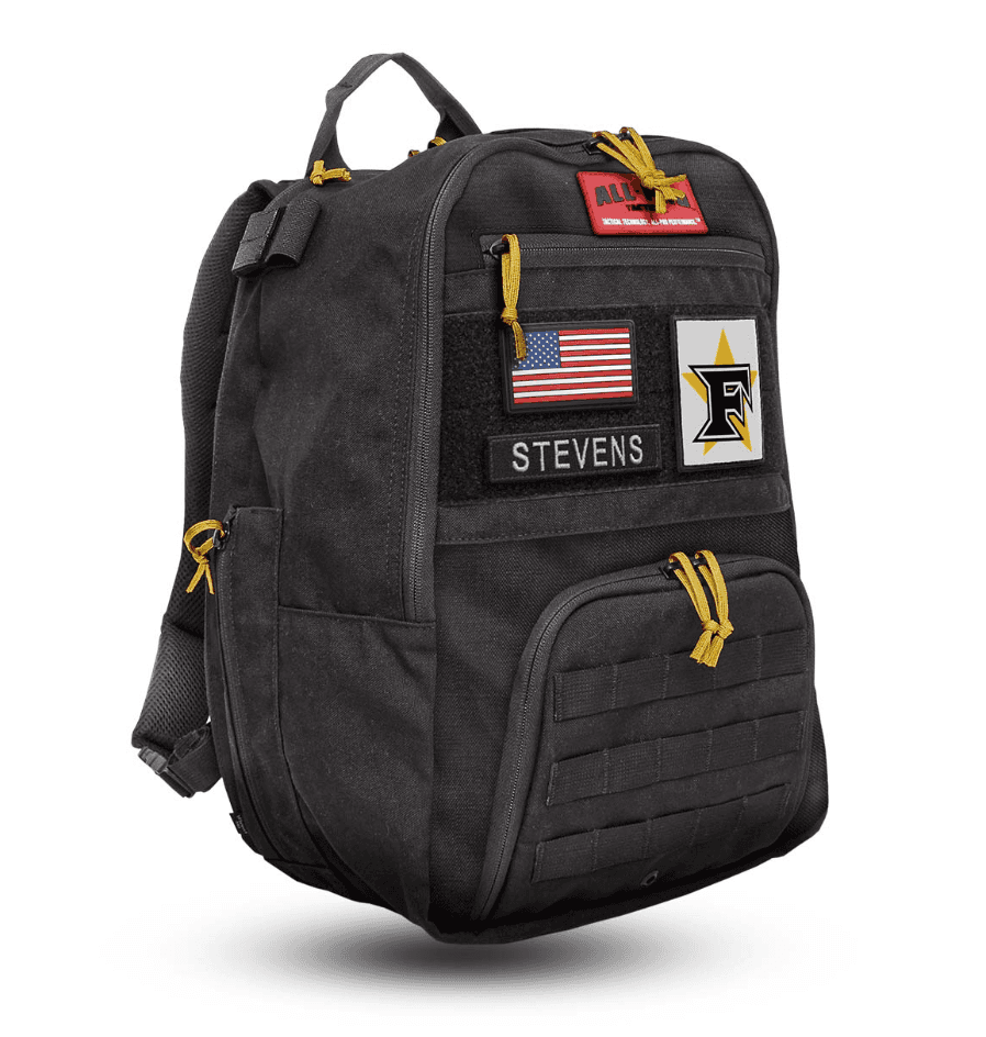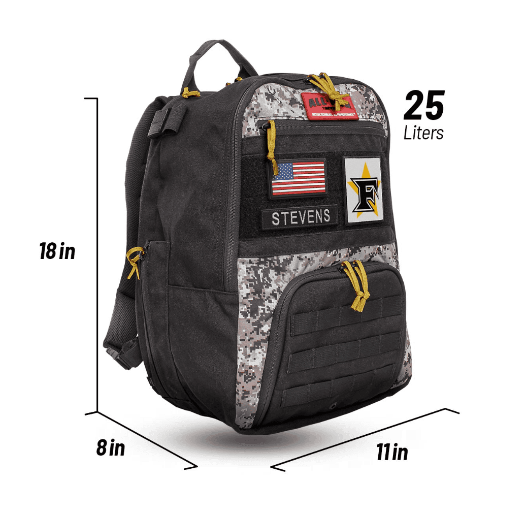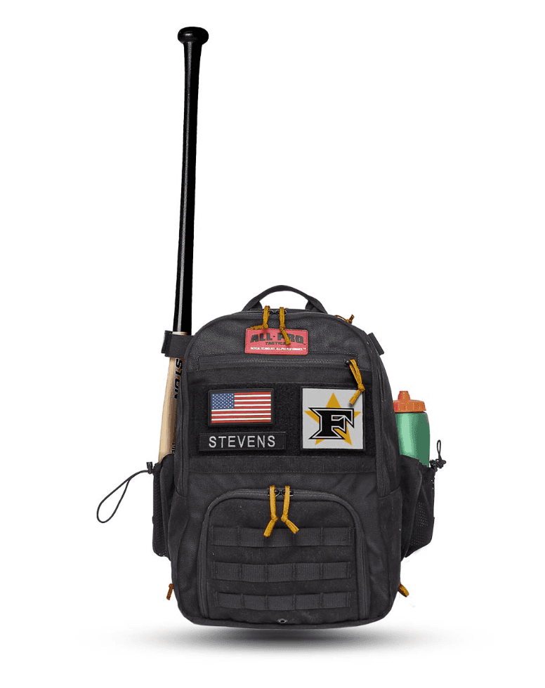 THE PERFECT PACK FOR COACHES Backed by All-Pro Tactical lifetime guarantee. • Built with abrasion resistant ballistic nylon for maximum durability. • Heavy duty plastic molded zippers eliminate corrosion and sticking. • Felt-lined top pocket provides protection for glasses, phones and valuables. • Full zip main cargo compartment opens wide for easy access. • Pack cloth lined front compartment cleans up easily. • Two mesh-lined side pockets unzip to carry any bat or water bottle. • Velcro side straps and side pocket elastic cinch locks secure your bat. • Lift handle for easy hoisting and carabiner loop for hanging. • Padded back with spacer mesh for cooling air flow. • Super-padded shoulder straps. • Full zip back panel with padded pocket provides additional storage for laptops, clip boards or play books. Size (L x W x H): 12″ x 8″ x 18″ Volume (liters): 28L Five Star Edition Also Includes: • Name & Number Patch Tape • Five Star Baseball White | Rip-n-Stick™ Pride Patch • American Flag Patch